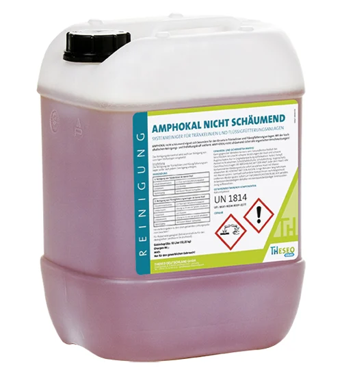 AMPHOKAL ® nicht schäumend ist ein Reinigungsmittel welches besonders für den Einsatz in Tränkelinien und Flüssigfütterungsanlagen geeignet ist. Mit konzentrierter, hochalkalischer Reinigungs- und Entfettungskraft entfernt das Reinigungskonzentrat sicher alle organischen Verschmutzungen.