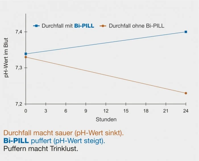 Sofort bei den ersten Anzeichen von Durchfall Bı®-PILL geben. 1 Pille sofort und je 1 Pille nach den nächsten 3 Mahlzeiten. Bı®-PILL vorrätig halten.