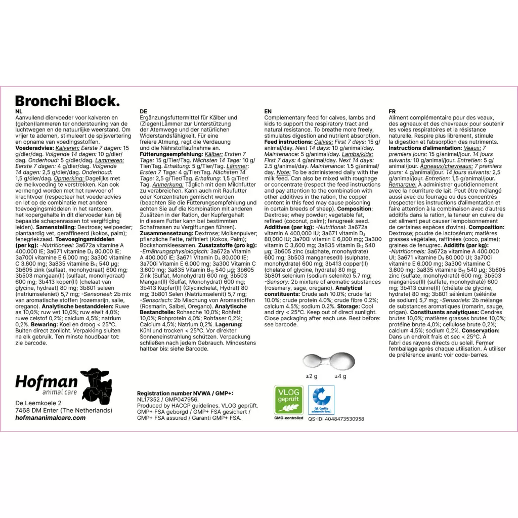 Bronchi Block ist ein Ergänzungsfuttermittel für Kälber und (Ziegen)Lämmer.