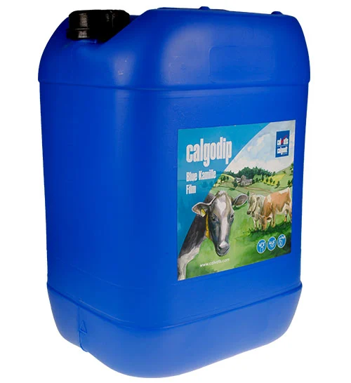 calgodip Blue Kamille Film ist ein gebrauchsfertiges Zitzendesinfektions- und -pflegemittel der neuen Generation zum Dippen nach jedem Melken. Das Produkt bildet um die Zitze eine desinfizierende Barriere. calgodip Blue Kamille Film enthält Hautschutzkomponenten und eine ausgewogene Menge an biologischer Milchsäure, welche sich durch eine besondere Hautfreundlichkeit auszeichnet und gleichzeitig eine hervorragende Desinfektionsleistung besitzt. Hochwertige Pflegekomponenten machen die Haut widerstandsfähig und geschmeidig. Die enthaltene Kamille beruhigt und pflegt die Zitzenhaut. Das Teebaumöl hat geruchlich eine geringe Akzeptanz bei Fliegen, sodass diese sich nach dem Melken und Dippen nicht auf der Zitze niederlassen. calgodip Blue Kamille Film ist nach der europäischen Norm EN 1656 geprüft und in der Desinfektionsmittelliste der InfoXgen gelistet.