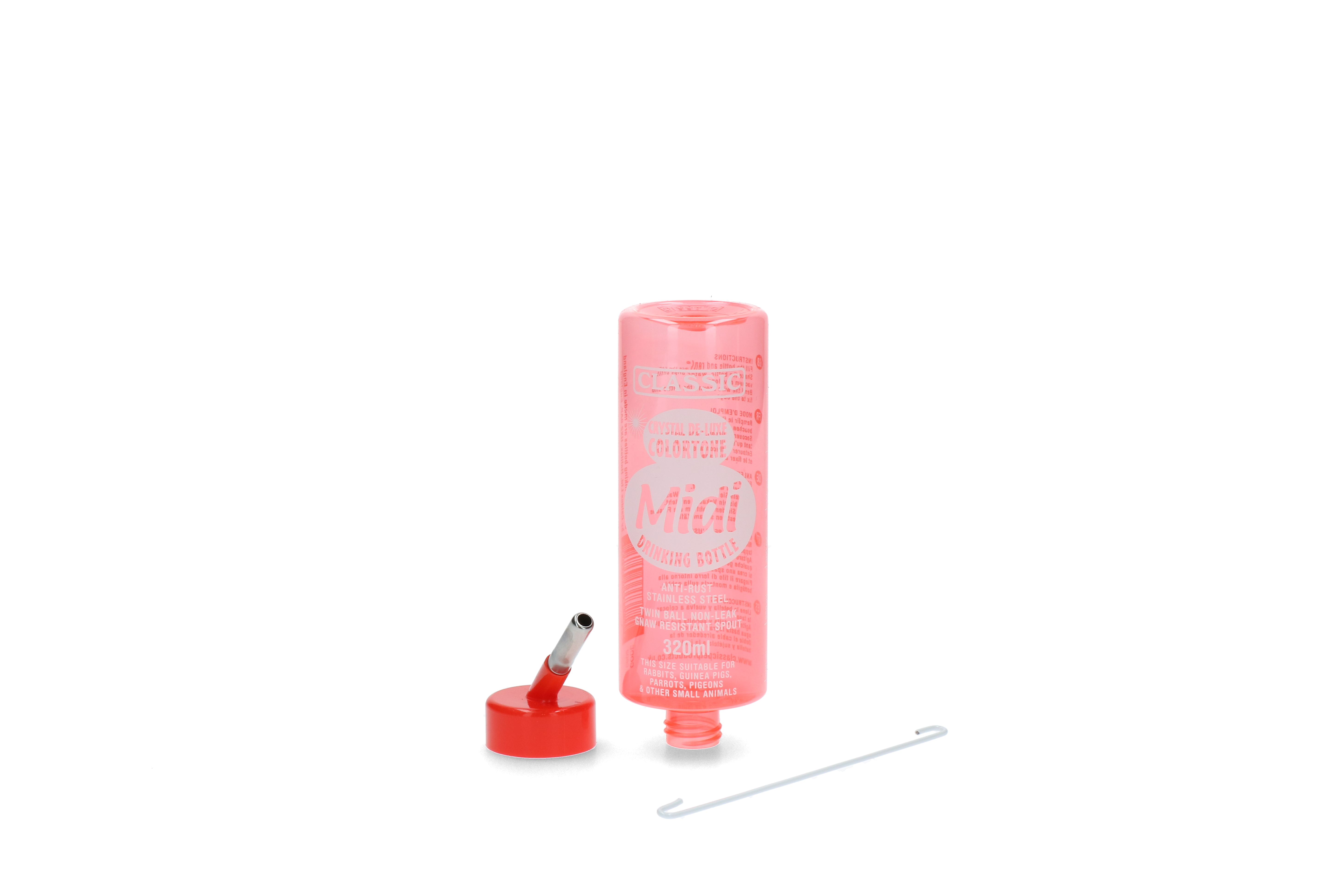 Diese farbige Trinkeflasche macht nicht nur Spaß, sondern ist sie aus langlebigem Kunststoff gefertigt. Sehr geeignet für verschiedene Arten von Nagetieren wie Kaninchen, Frettchen, Chinchillas, Ratten, Meerschweinchen, Hamster und Mäuse. Einfach zu füllen, zu hängen und zu reinigen.