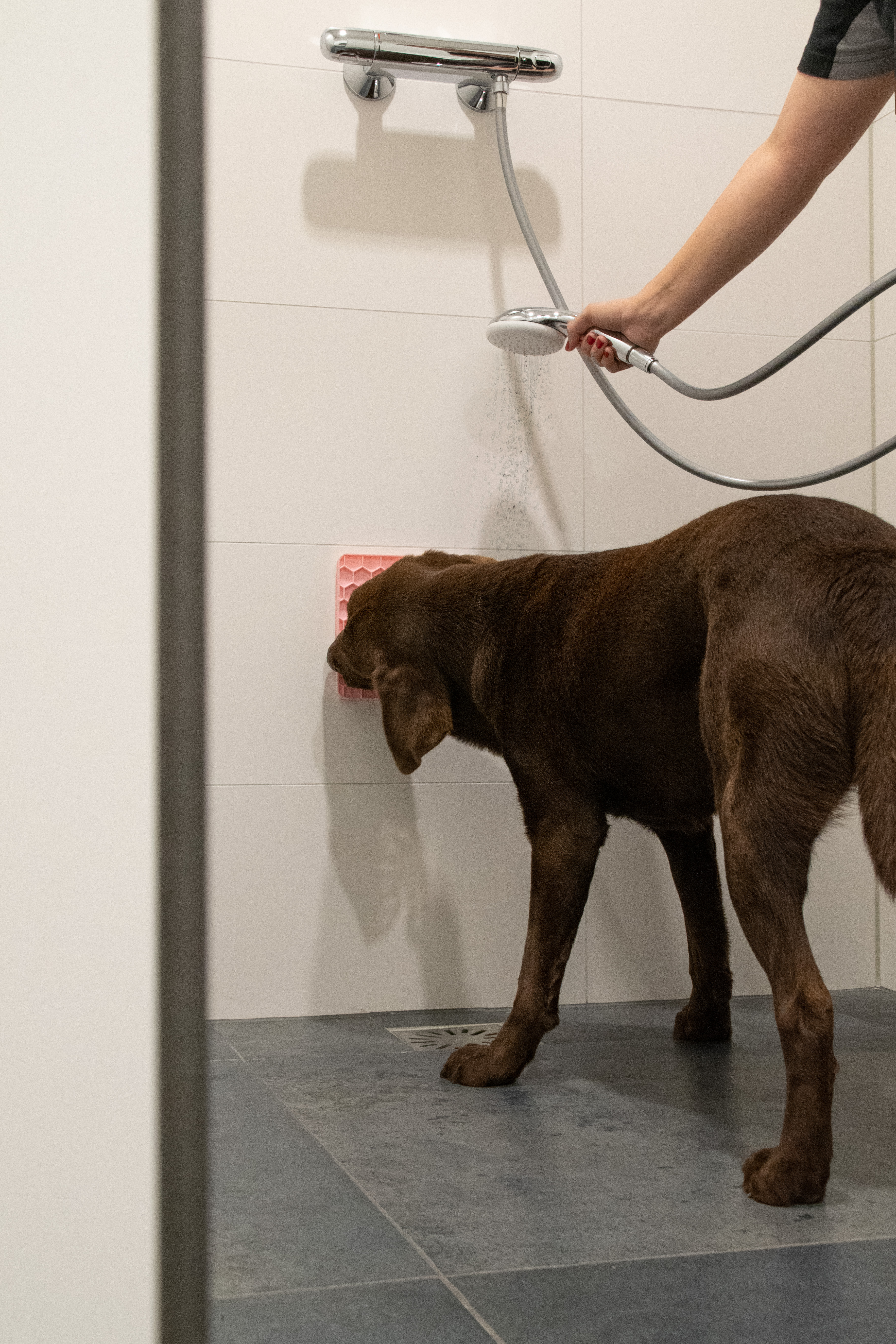 Die Eat Slow Live Longer Schleckmatte ist ideal, wenn der Hund z.B. Angst hat, gebürstet oder gewaschen zu werden. Lecken hat eine beruhigende Wirkung.