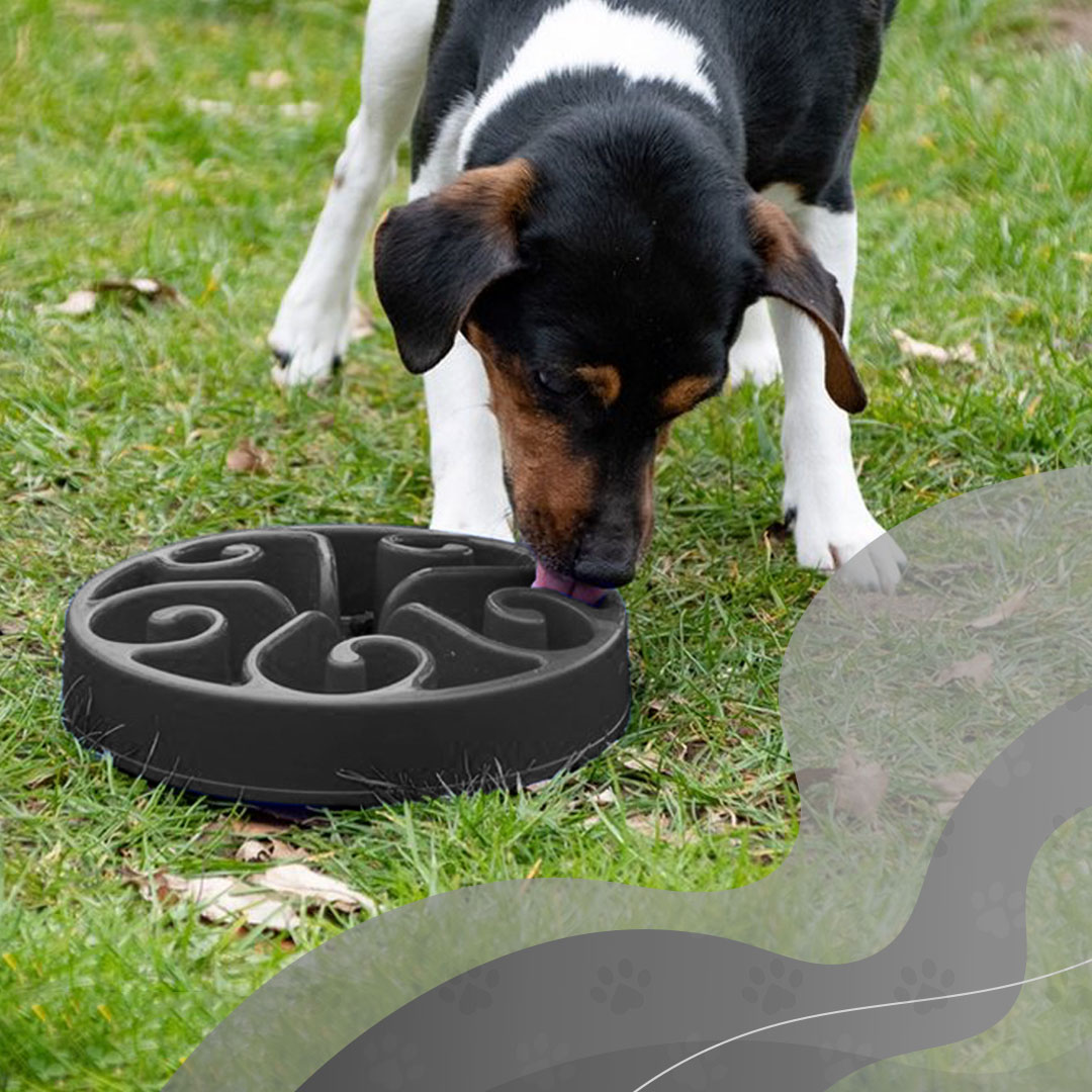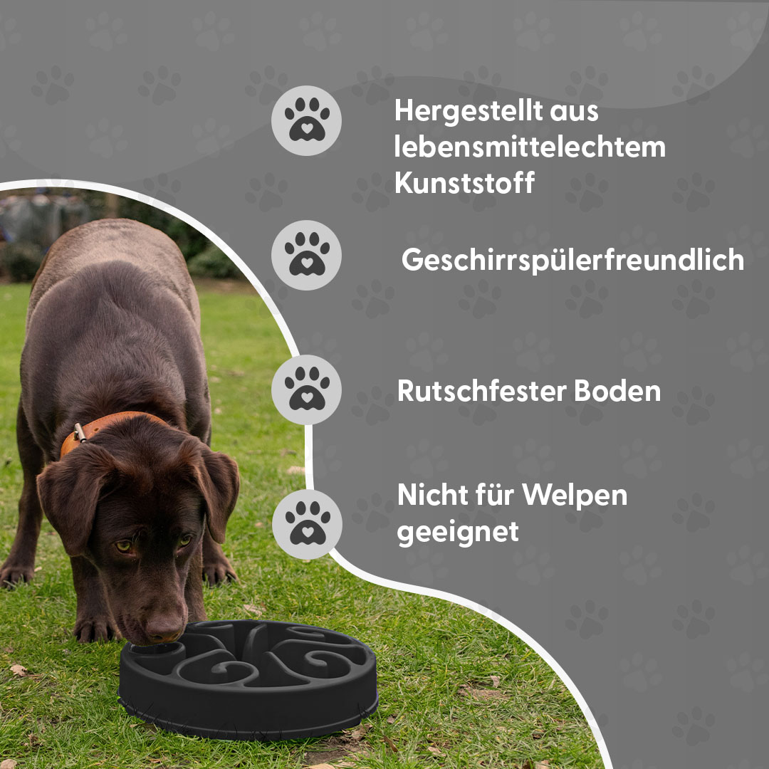 Schnelles Fressen oder Verschlingen kann zu verschiedenen Problemen führen, z. B. zu Übergewicht (weil das Futter nicht so gut verdaut wird), Magendrehung und Blähungen (weil das Tier mehr Luft zu sich nimmt). Ein Anti-Schlingnapf kann helfen, diese Probleme zu verringern oder zu verhindern.