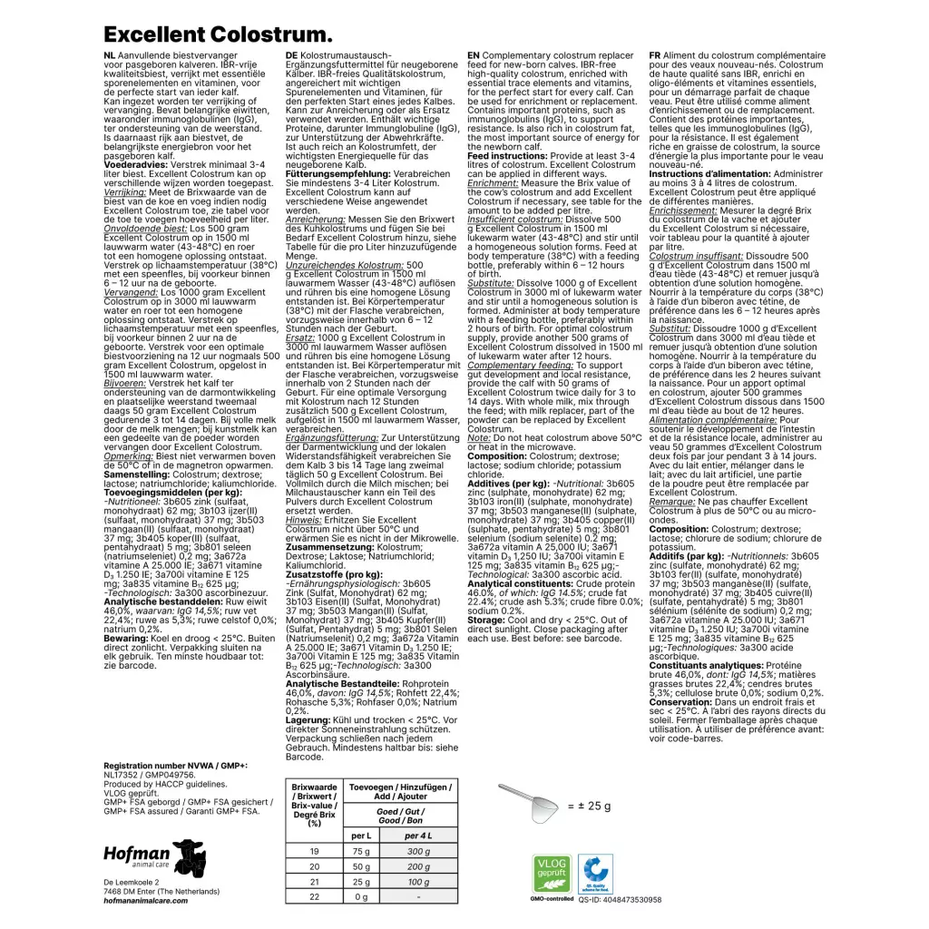 Neugeborene Kälber brauchen manchmal eine helfende Hand beim Aufwachsen. Speziell für diesen Zweck gibt es Excellent Colostrum! Dieses 100% IBR-freie Qualitätskolostrum bietet einen perfekten Start für jedes neugeborene Kalb. Dieses Produkt kann verwendet werden, wenn nicht genügend Kolostrum produziert wurde. Auch kann das produzierte Kolostrum von unzureichender Qualität sein. In diesen Fällen kann Excellent Colostrum zur Anreicherung oder als Ersatz verwendet werden. Excellent Colostrum enthält wichtige Proteine, darunter Immunglobuline (IgG) zur Unterstützung der Abwehrkräfte.