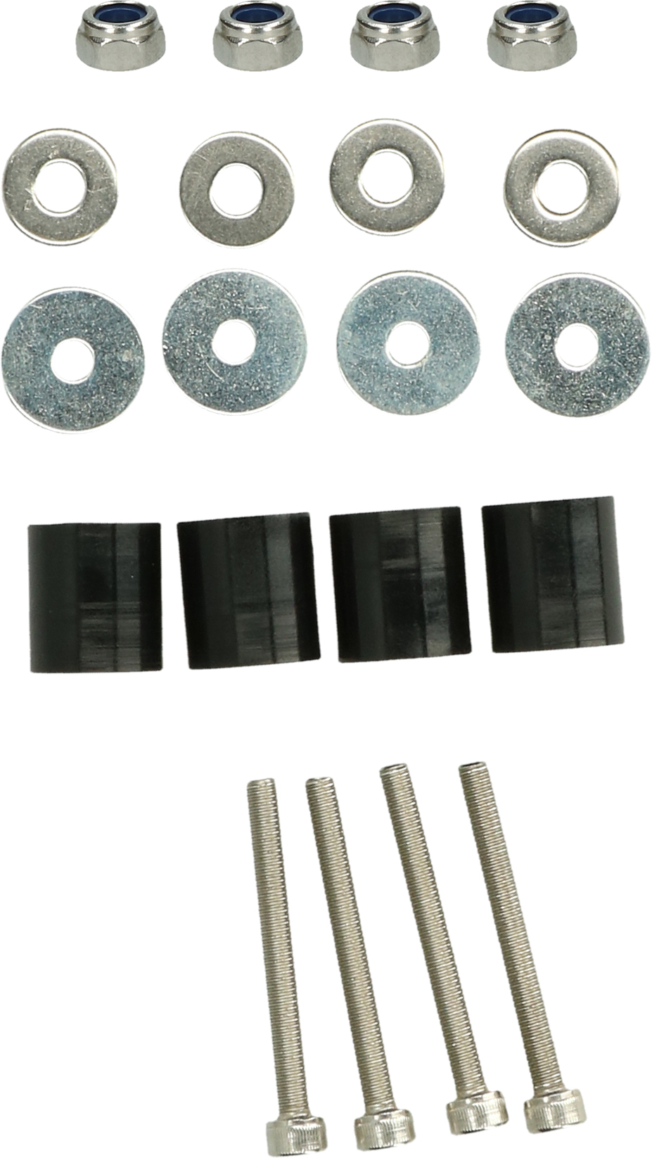 4 Bolzen, 8 Platte, 4 Gummis und 4 Schrauben