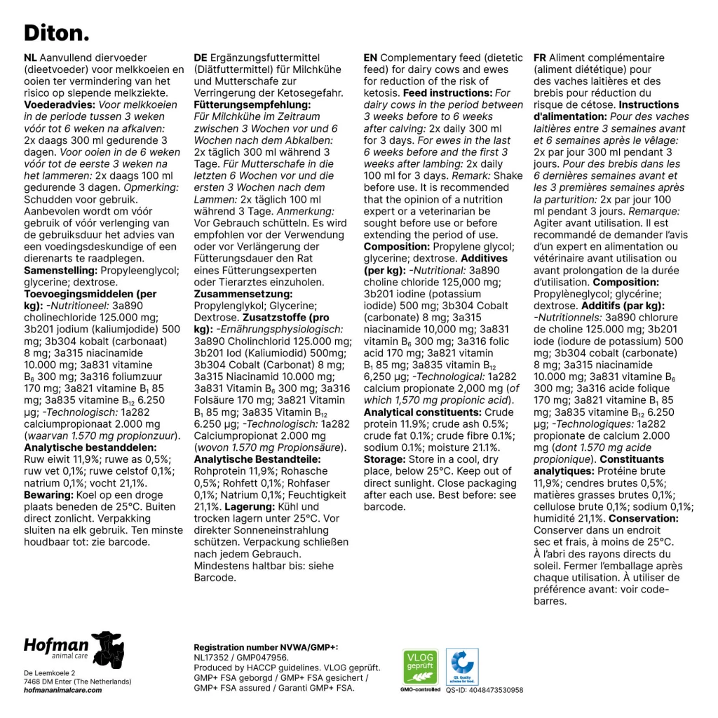Verwenden Sie Diton, um die Ketose zu reduzieren! Nicht umsonst ist Diton seit 25 Jahren das Produkt zur Reduzierung der Ketose, da es bereits nach drei Tagen der Einnahme das Risiko einer Ketose eliminiert. Es ist seit vielen Jahren ein beliebtes Produkt bei Milchviehhaltern und Experten. Außerdem gibt es jetzt eine erneuerte und verbesserte Zusammensetzung, die den neuesten Standards und Erkenntnissen entspricht.