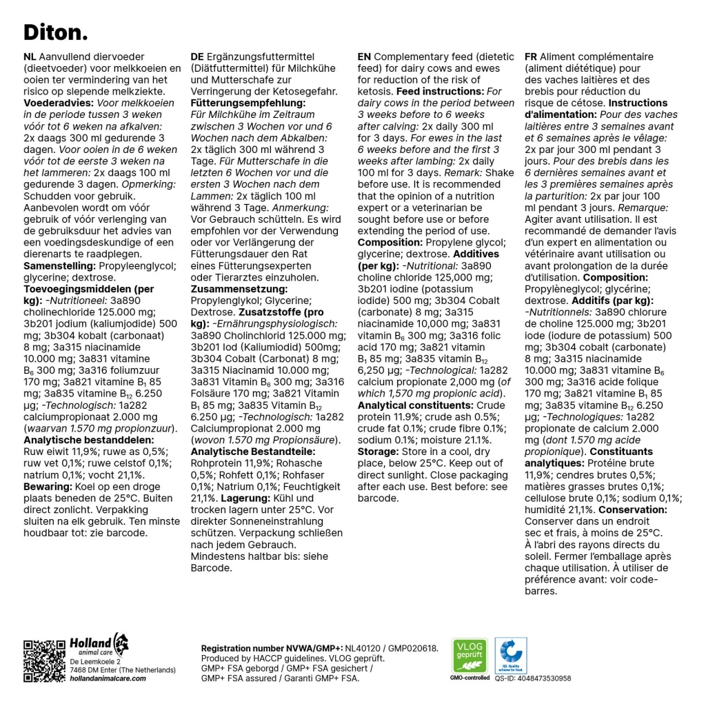 Verwenden Sie Diton, um die Ketose zu reduzieren! Nicht umsonst ist Diton seit 25 Jahren das Produkt zur Reduzierung der Ketose, da es bereits nach drei Tagen der Einnahme das Risiko einer Ketose eliminiert. Es ist seit vielen Jahren ein beliebtes Produkt bei Milchviehhaltern und Experten. Außerdem gibt es jetzt eine erneuerte und verbesserte Zusammensetzung, die den neuesten Standards und Erkenntnissen entspricht.