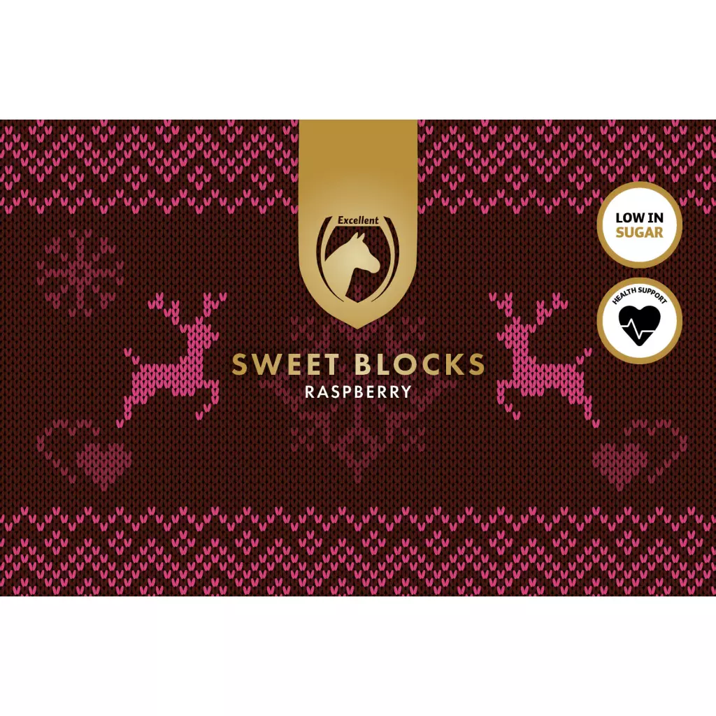 Die Excellent Horse Sweet Blocks Raspberry sind eine zuckerarme und schmackhafte Belohnung für Pferde, jetzt mit festlichem Weihnachts-Touch. Diese kompakten, brotstückartigen Leckerlis eignen sich ideal als Belohnung während der Feiertage und sind gleichzeitig eine wertvolle Ergänzung zum täglichen Futter, die die allgemeine Gesundheit unterstützt.