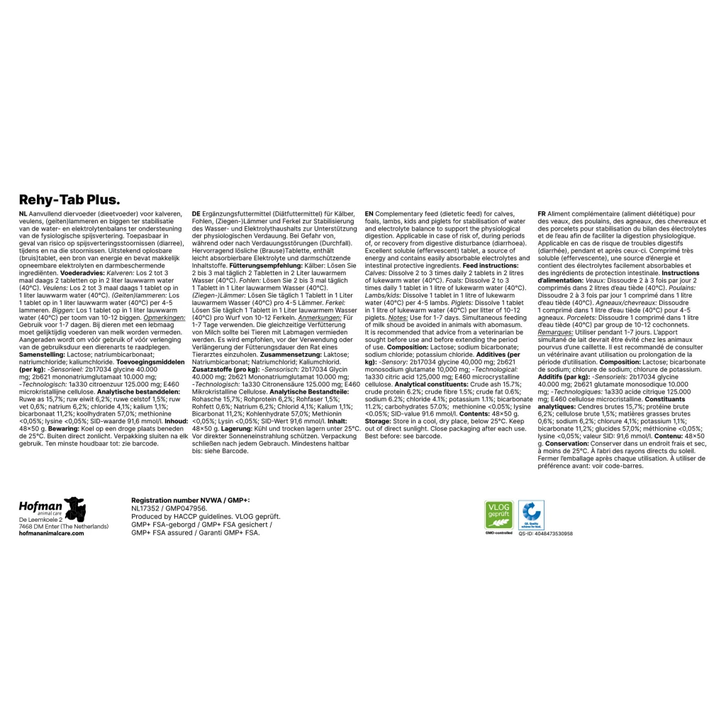 Rehy-Tab Plus (Brausetablette Durchfall) ist eine ausgezeichnete lösliche (Brause-)Tablette für Kälber, Fohlen, (Ziegen-)Lämmer und Ferkel. Diese Tabletten sind bei der Gefahr von Verdauungsstörungen (Durchfall), während und nach diesen Störungen anwendbar. Es ist Ergänzungsfuttermittel (Diätfuttermittel) für Kälber, Fohlen, (Ziegen-)Lämmer und Ferkel zur Stabilisierung des Wasser- und Elektrolythaushalts zur Unterstützung der physiologischen Verdauung. Rehy-Tab Plus (Brausetablette Durchfall) ist eine Energiequelle und enthält leicht absorbierbare Elektrolyte und darmschützende Inhaltsstoffe.