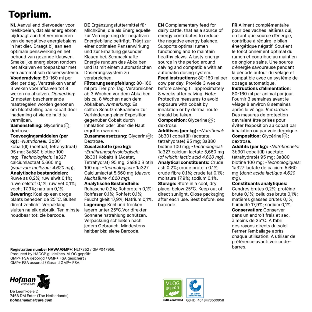 Toprium ist eine schmackhafte, flüßige Energieversorgung für Milchvieh.