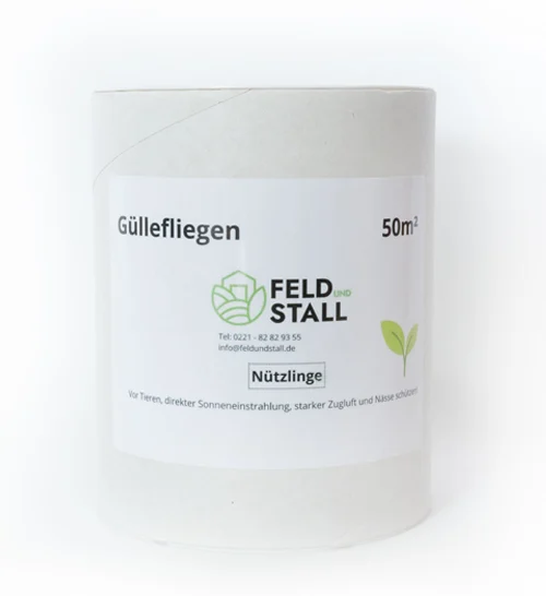 Idealerweise wird die Güllefliege 5 mal in zweiwöchigen Intervallen ausgetragen. Eine Packung reicht für 50m² Stallfläch. Nach Erhalt der Güllefliege sollten die Versandhülsen direkt im Stall geöffnen und an einem für die Tiere unerreichbaren Ort in der Nähe des Unterflurbereichs platzieren werden. Innerhalb von ca. fünf Tagen schlüpfen die Güllefliegen und suchen selbstständig die Brutstellen der Stallfliege auf.