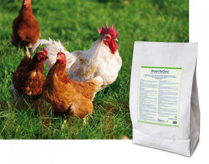 InsectoSec® wirkt gegen Ungeziefer ohne das Geflügel direkt behandeln zu müssen. Es besitzt eine stark dehydrierende Wirkung gegen die rote Vogelmilbe und andere kriechende Schädlinge wie Schaben und Ameisen. InsectoSec® wird an den bevorzugten Laufwegen und Verstecken ausgebracht. Durch Kontakt mit dem Wirkstoff stäuben sich die Schadinsekten ein und verenden innerhalb kurzer Zeit. Resistenzen sind nicht bekannt!
