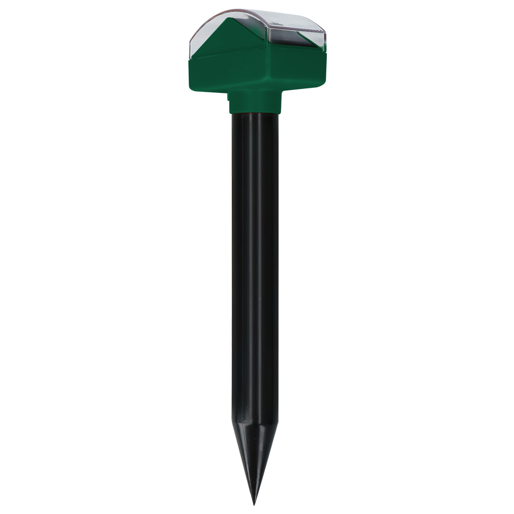 Das Gerät ist mit Smart Control ausgestattet, das 4 verschiedene Arten von Zeit- und Vibrationsintervallen bietet, damit sich die Maulwürfe nicht daran gewöhnen. Das vollständig geschlossene Gehäuse bietet einen Wasserschutz nach IP66.