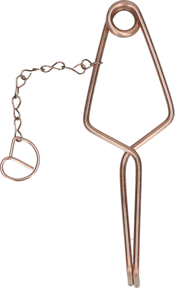 Verkupferte Drahtfalle zum Fangen von Wühl- und Feldmausen. Sehr einfach zu verwenden. Der Klemmring ist an einer Kette befestigt und kann somit nicht im Boden verloren gehen.