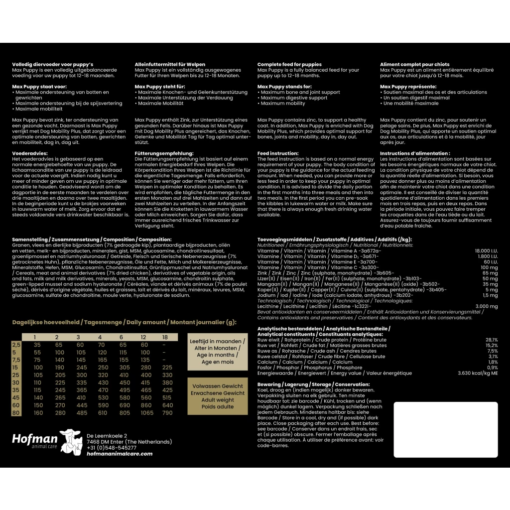 Max Puppy enthält alle notwendigen essentiellen Omega-Fettsäuren, Vitamine und Mineralien für optimales Wachstum und maximale Entwicklung des Welpen.