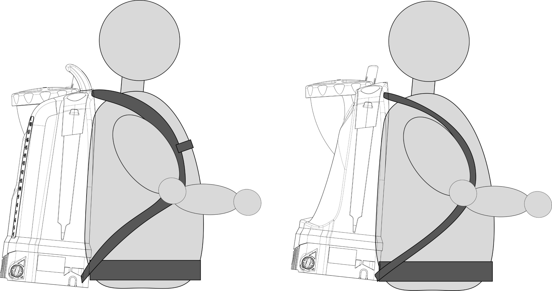 Ergonomisch geformt und man zieht die Spritze so zu sagen an wie eine Jacke. Auch der ergonomische Pumphebel und geformter Handgriff sind verstellbar. Außerdem ist das Abstellventil ergonomisch geformt mit Kontrollmanometer.